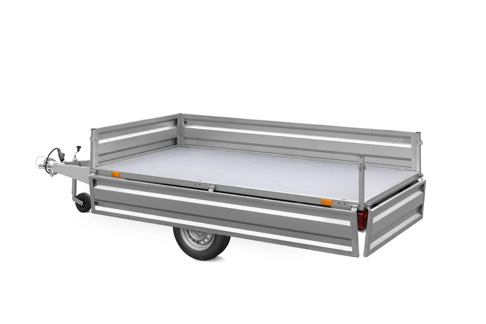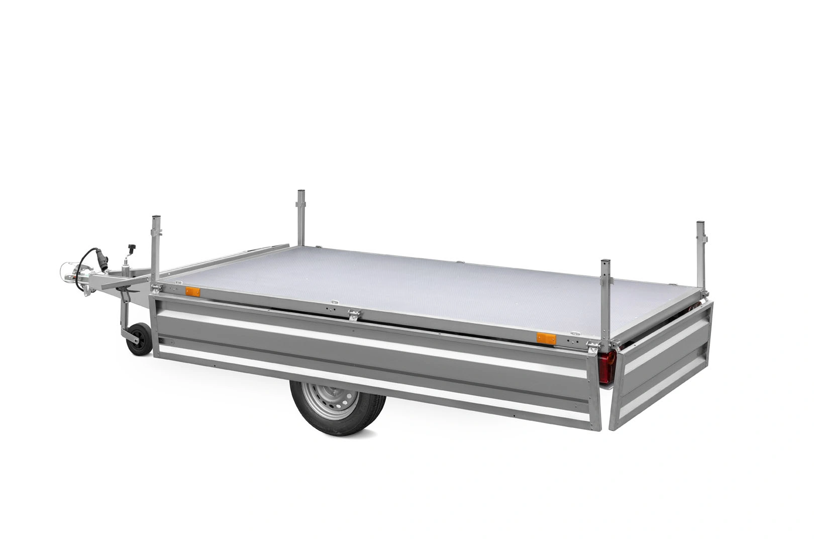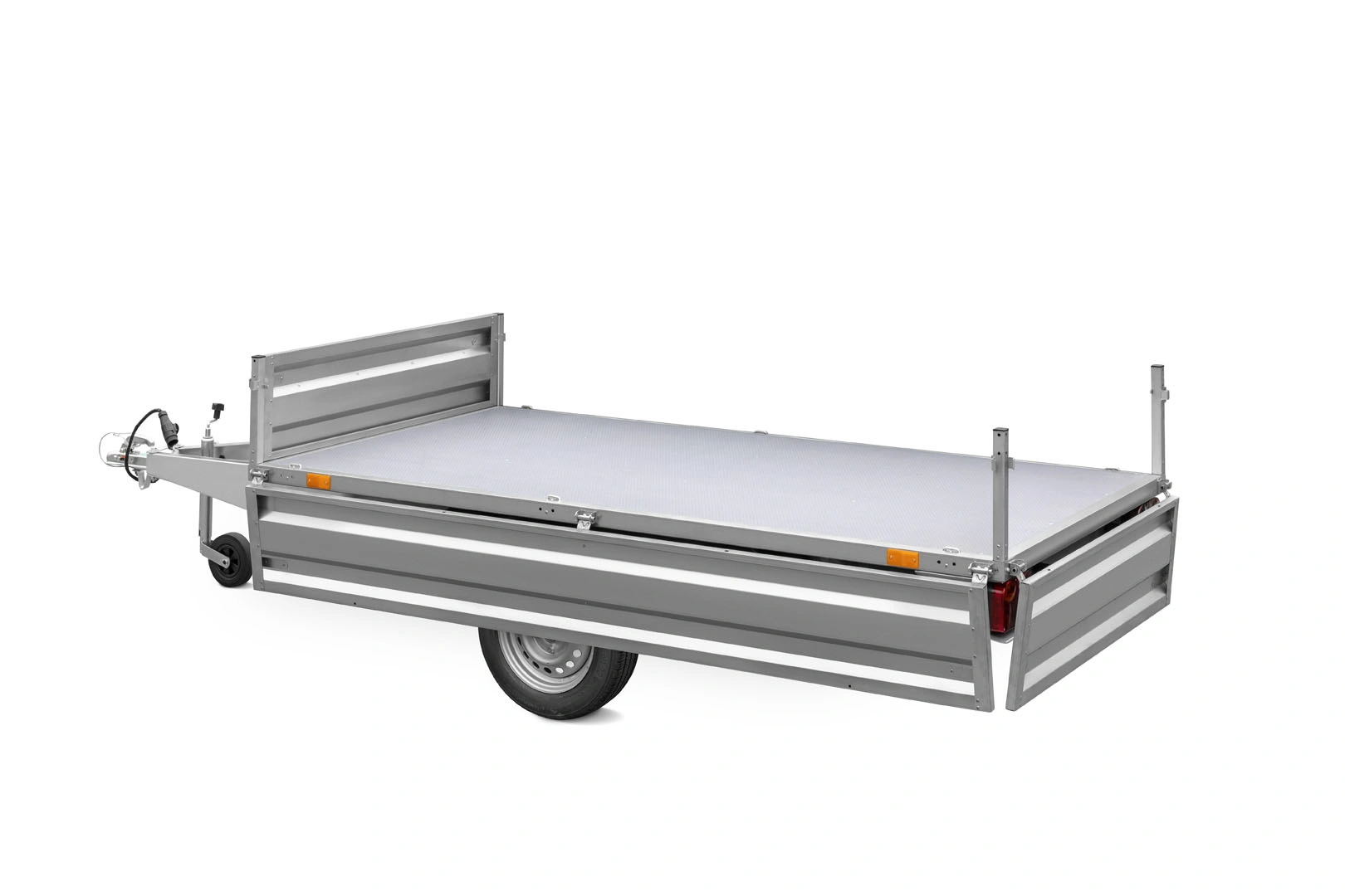 • System Hinge Remove – unikalne rozwiązanie pozwalające na szybki demontaż wszystkich burt i słupków, co pozwala przekształcić przyczepę w całkowicie płaską platformę.