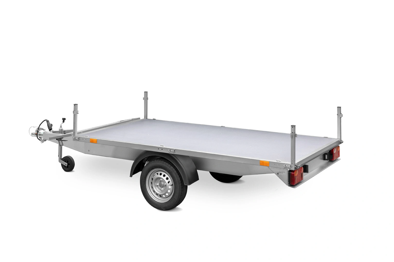 • Możliwość doposażenia: Koło zapasowe z uchwytem, plandeka płaska, plandeka ze stelażem (system Multi Top), nadstawki burtowe pełne lub perforowane, trapy najazdowe, oświetlenie LED, amortyzatory osi.