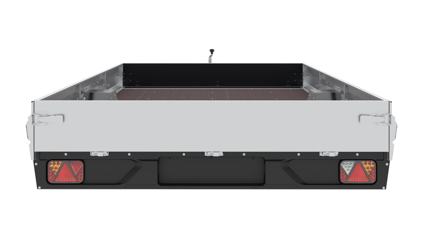 Podłoga przyczepy wykonana jest z wodoodpornej i antypoślizgowej sklejki, która gwarantuje łatwość załadunku i jego bezpieczeństwo nawet w trudnych warunkach. W standardzie przyczepa wyposażona jest w lampy LED, zapewniające lepszą widoczność i bezpieczeństwo na drodze. Nowoczesny wygląd modelu podkreślają przednie i tylne czarne osłony wykonane z tworzywa. Mają one nie tylko zadania ozdobnego, ale przede wszystkim, chronią przed uszkodzeniami mechanicznymi, co jest szczególnie istotne przy intensywnym użytkowaniu. Osłony umieszczone są zarówno po zewnętrznej, jak i wewnętrznej stronie burt przedniej i tylnej.