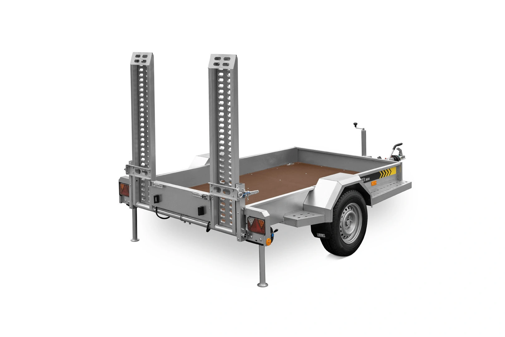 Konstrukcja przyczepy do transportu pojazdów i maszyn TM13 jest niezwykle wytrzymała i odporna na działanie czynników zewnętrznych. Elementy zabezpieczono przed korozją poprzez cynkowanie ogniowe, które dodatkowo zwiększa jej wytrzymałość na tarcie i uderzenia