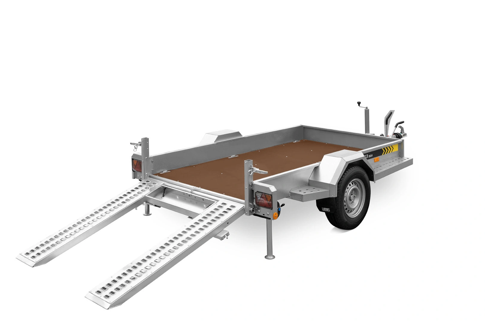 Przy zakupie przyczepy do transportu pojazdów i maszyn, otrzymasz w standardzie koło podporowe, lampy LED oraz podpory załadunkowe. Dodatkowo można ją doposażyć w koło zapasowe wraz z mocowaniem oraz amortyzatory.